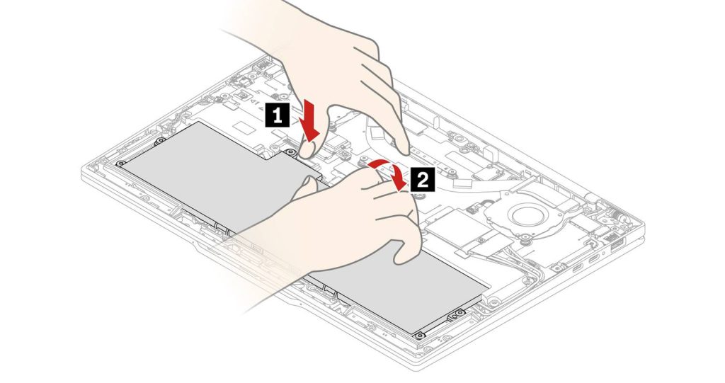 ThinkPad X1 Carbon Gen13のバッテリーは内蔵バッテリーであり、本体の内部に装着されていますが、定められた手順を守れば自分でいつでも交換できるようになっています。バッテリーが寿命を迎えても修理に出す必要はありませんので、万が一の故障の際も、ローコストかつ迅速な対応が可能です。